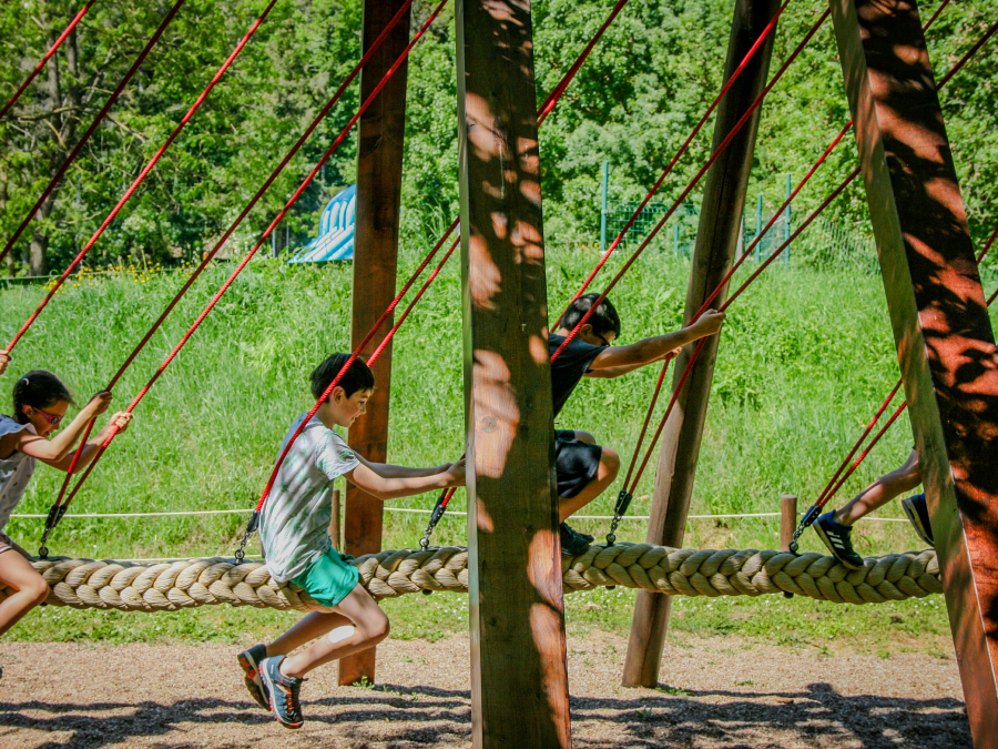 Pour des questions d'hygiène et de sécurité, les chiens ne sont pas acceptés dans le parc de jeux, mais ils le sont dans le mini-golf et à la Guinguette